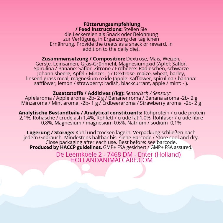Natürliche Aromen (Erdbeere, Apfel, Banane und Minze)